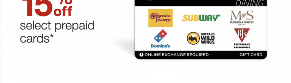 Save 15% on a select group of gift cards at Target today – lots of great places and card values from $25 to $150! I like the idea of one card being valid for multiple restaurants.