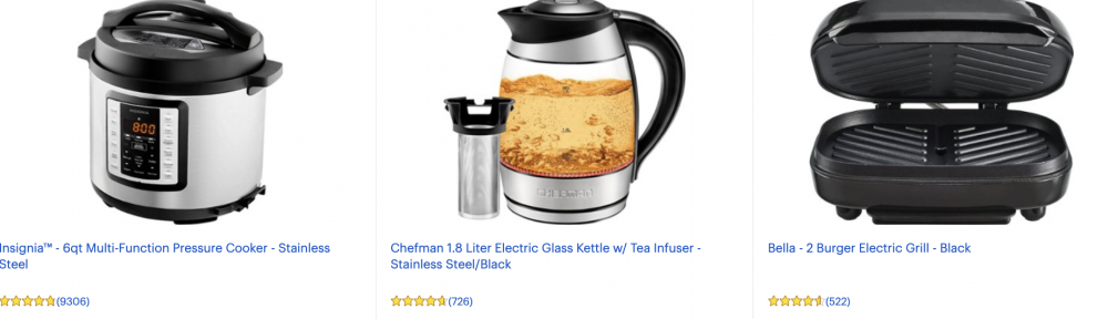Main deal is some kind of light thing for a tv (why???), but bonus deals on the usual small appliances offer deep discounts. We have the electric kettle pictured and use it ALL the time. Check out the great choices on Best Buy Daily Deals.