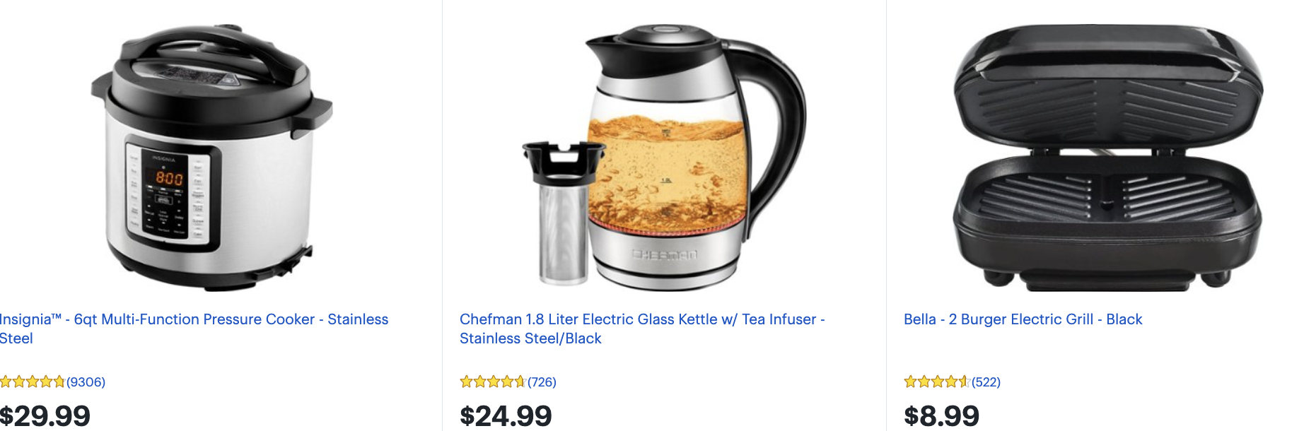 Main deal is some kind of light thing for a tv (why???), but bonus deals on the usual small appliances offer deep discounts. We have the electric kettle pictured and use it ALL the time. Check out the great choices on Best Buy Daily Deals.