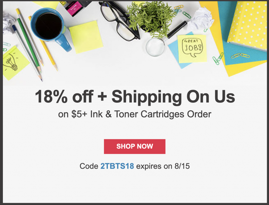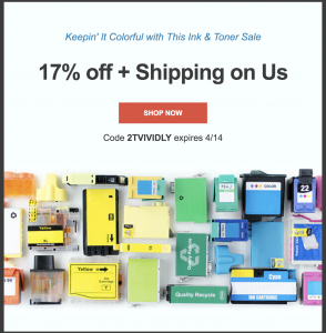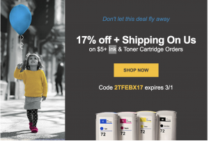 New promo code 2TFEBX17 takes 17% off your already low-priced ink supplies plus gives you free shipping! Code valid through 3/1. Used them exclusively for years for all our inks with never a bit of trouble.
