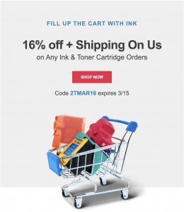 16% off + Free Shipping on your ink needs