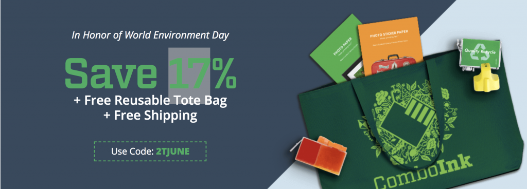 Through June 30th, save 17% plus get Free Shipping and a Free Reusable Tote to celebrate World Environment Day. A new holiday for me, but a great savings deal. Used ComboInk exclusively for years (except for that one time I ran out and had to run out to the big box office place) with never an issue.