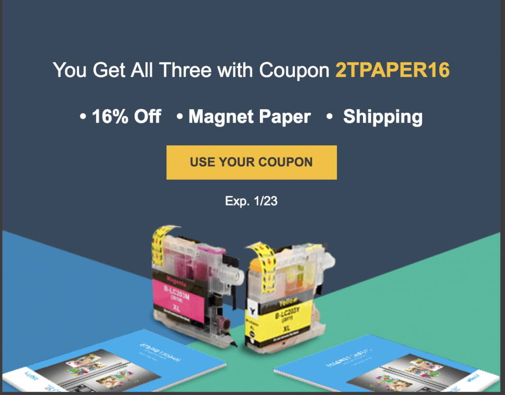 Use coupon code 2TPAPER16 for three deals at ComboInk. Tested this without signing in, so it’s available to all. ComboInk has very high quality inks and cartridges – – I’ve used them without trouble for years now. You can’t beat their dirt cheap prices. Shipping is also fast.