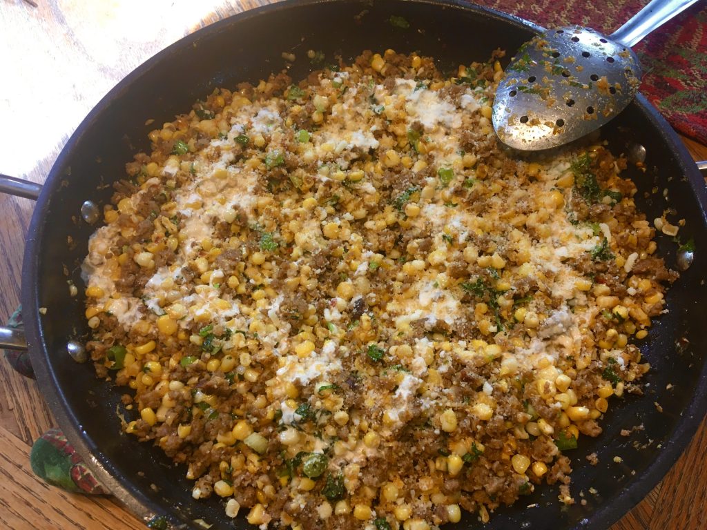 Subscribe to Cook’s Illustrated, just $10.50/year from DiscountMags with promo code 946581. FirstBorn made this dish from the newest issue of Cook’s Country, the sister publication we get (each month brings one or the other). Very, very, very tasty … in fact, all the leftovers filled that one spoon.
