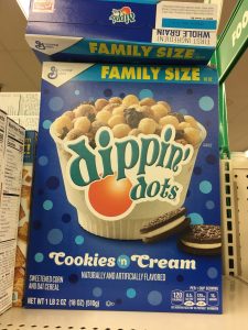 Here’s something PITA spotted while out at DT the other day – Loma Linda Sloppy Joe 10 oz pouch. Or would you rather pay $6.99 for the 15 oz can at Jewel? Dollar Tree also had these HUGE boxes of dippin’ dots cereal!