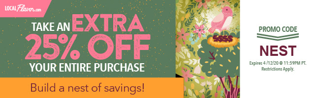 For a limited time, take an EXTRA 25% off all Deals across LocalFlavor with Promo Codes SAVORY, APPLEPIE, PICNIC or COOKED. You get the discount off your entire cart, not just one or two deals; they’ve also extended their already long expiration dates. If there’s a restaurant you love, call and see if they’re swapping takeout for dine-in.