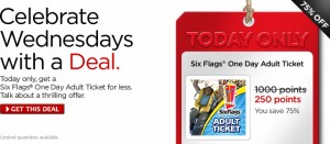 My Coke Rewards tries to have great deals each Wednesday; they’ve have deeply discounted Coke 12-pk coupons in the past. Today’s deal is for an adult ticket to Six Flags for only 250 points (1,000 is usual price). Only catch is that this ticket will only be good during 2012, so make sure you check your location’s operation schedule. Here in the Midwest they’re open for Halloween-type thrills, but after that?