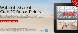 Watch this Coke ad airing during Superbowl and pick out the winner. Get 10 points for voting and an additional ten when/if you tweet. The ad is very short and quite amusing.