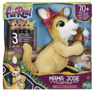 With this Target 50% off sale, you can get furReal Mama Josie the Kangaroo Interactive Pet Toy for only $19.74 or even less with RedCard. Mama Josie the Kangaroo interactive pet toy can move her head and arms, does a little hopping dance to music, and makes loving sounds when holding or kissing one of her babies. Includes big pet, 3 little pets, smoothie accessory, and 3 little accessories for the babies.
