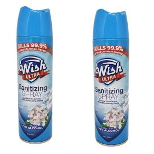 2 PACK 19 oz Sanitizing Spray cans contain 75% Alcohol – $12.99 a pack. Order 3 or more 2 pks and shipping is free. These compare to Lysol Disinfectant Spray, still hard to find and even harder to get quantity.
