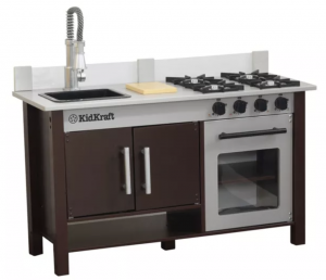 Get this clearance deal from Target on the KidKraft Tiny Chef’s Pro Kitchen for only $53.99. Four realistic gas-style burners, a little chopping board and a sink with a pull-down faucet echo the sensibility of a real pro kitchen.