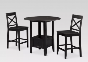 Target has their Threshold™ 3-piece storage bistro set on clearance for only $137.49! This price is for the black version – brown is $100 higher. Drop leaf table makes this perfect for even the smallest area!