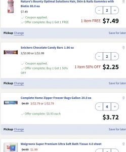 I’ve scoured what I could, but this looks to be the best on offer at Walgreens this week – great if you need plastic bags or love the vitamins, but don’t see any Crest or Colgate promos. Clipping all coupons and using promo code WAGS20 for 20% off Walgreens brand items will bring your subtotal down to $15+. Bags and toilet paper are the best deals, although I’ve never used their fancy tp line.