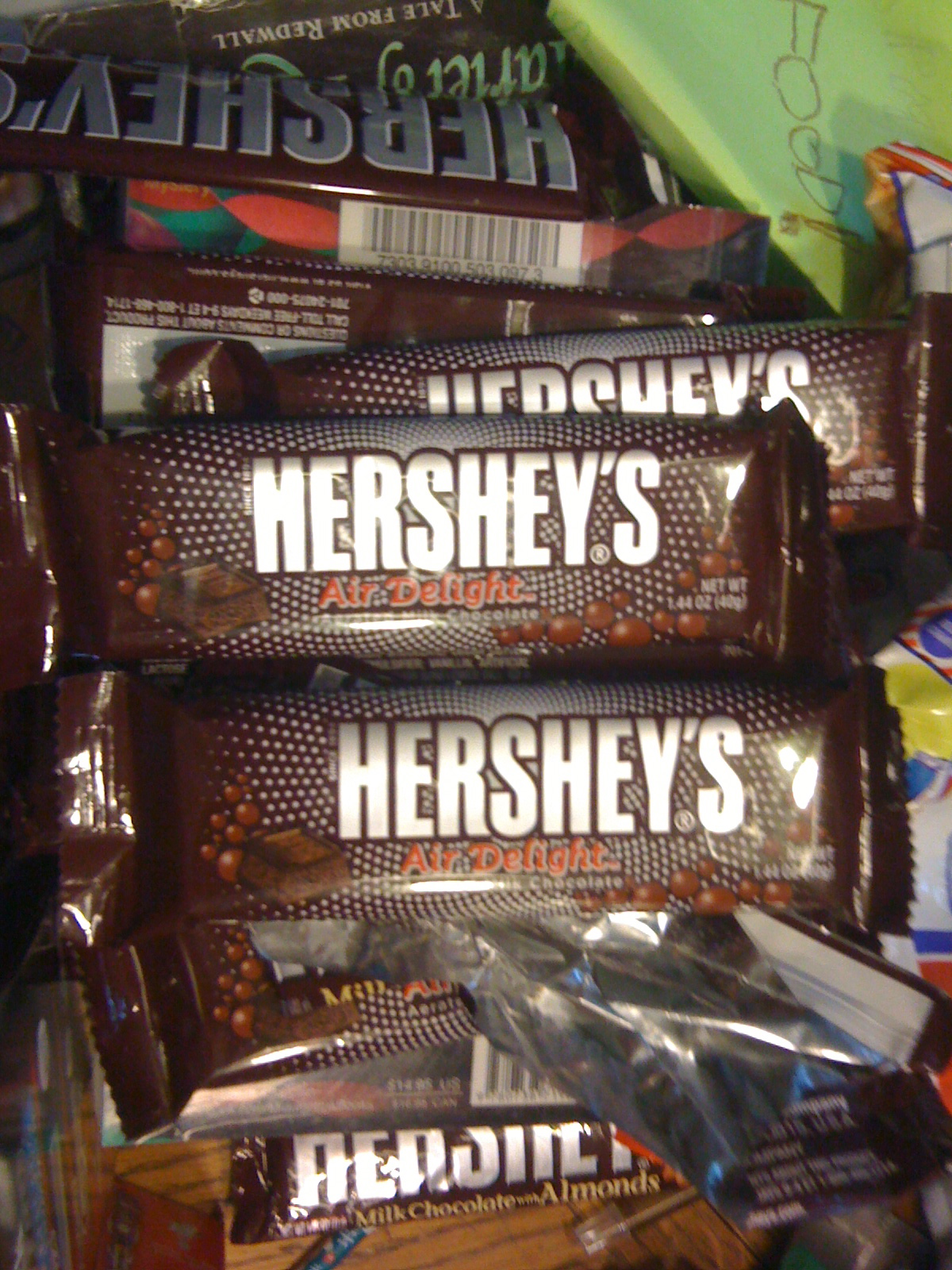 Then CVS…You all know about my love/hate relationship with CVS. The relatively new store at Ogden and Naper Blvd is clean and the people who work here are über-friendly, and I really, really want to give them business. They just never have stock! And while I could love them to death as people, lack of stock is the deal-killer for me. So you can imagine my surprise when I hit them up on my last shopping leg of the day that not only did the cashier remember me from the non-supply of Air Wick deal a few weeks ago, she had stock for me AND boxes upon boxes of the Hershey chocolate bars. Sweet! (pun intended) You are looking at about 150 chocolate bars..hehehehehe. Obviously I couldn’t eliminate all costs (high taxes, thank you rat bastard Q), but I ended up about $18 OOP. Oh, I forgot…that included a gallon of Dean’s milk.