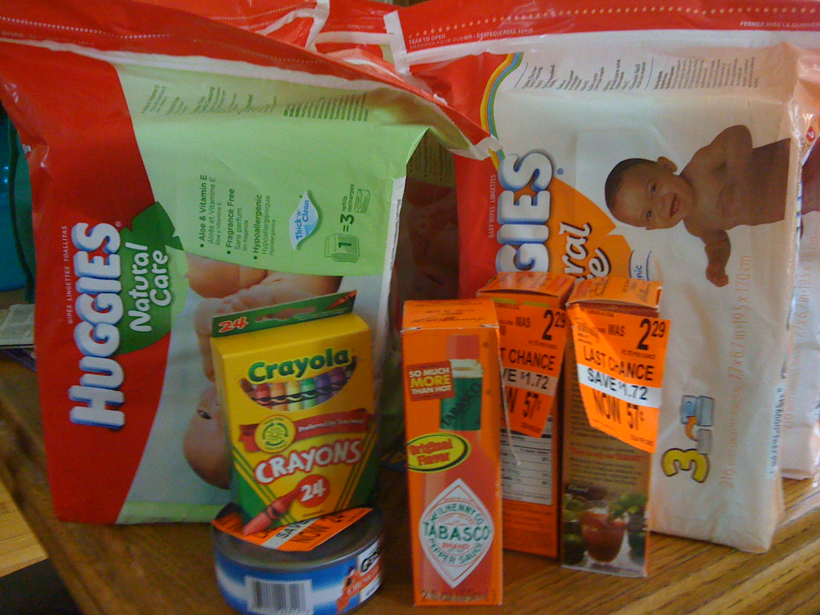 wipes and all applicable coupons brought me down to .05 plus .88 in tax. Last transaction was with a .24 can of tuna and the Crayola sale ($1 with $1 RR). Don’t need crayons, but it only cost me tax and the ability to use another RR.