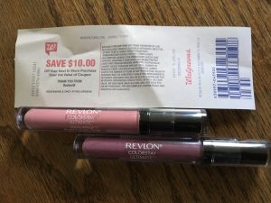 Honestly, this is just a couple of clearance fun colors for PITA – well, actually a money maker for me 🙂 This week Walgreens has a $10 Register Reward deal when you spend $10 or more on select Revlon products. You’re welcome to buy the higher end stuff, but my name is carp…bottom feeder. Use the $5 10/6 SS coupons like I did and those $5.99 products end up costing you $1.98 plus tax (used points and paid 82¢ OOP).