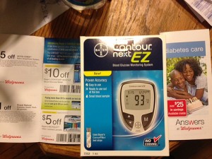 Keep your eyes open for that Diabetes Care booklet with the $10 Bayer glucose meter coupon – I found another 12 books today and picked up four more meters. Of the first group of nine I dropped off at the pantry on Tuesday, several have already been taken. That’s gratifying…as is the 2,000 points for each (on low tax). Hey, at least I’m honest about it!