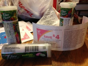 Only had twelve inserts – plan on getting more – so that’s why you only see the 12 cartons of Smart Balance milk. I ran these in sets of two because this $1 off Simply Pure milk cat kept spitting out. Dates are 4/26, so I’ll wait like a spider for a decent sale ’cause the stuff’s $3.29 otherwise.
