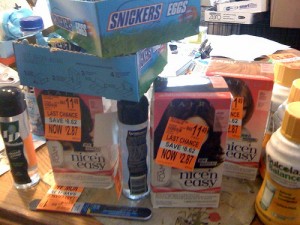 The good news is they have about 500 Nasal Ease in stock, with a couple of hundred of the other products (except Pepsi Next, which is pretty much overflowing at all Walgreens) – Stephanie will be calling around to scare up more of everything else we need for the rolls.