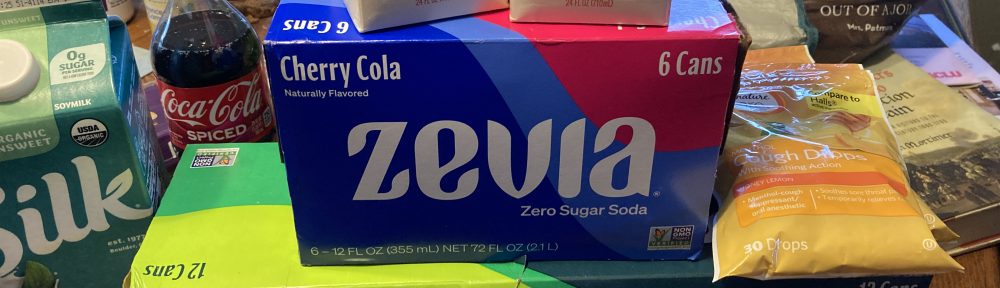 Figured we’d hit up Jewel for the Saturday freebies … on the off-chance they had a clearance cart out – which they did!!! Pita grabbed her beloved Zevia soda at 75%. Needed half and half, but there was no way I was paying $7.49 a half gallon, although I’d get a discount by buying THREE. Even I am not that nuts, so we headed over to Amazon Fresh, where it was $5.49 🙂 They had more of the Chobani creamer on 98¢ clearance, so threw six into the cart. May dates mean Pita will be through them long before, since she’s already used one of the nine bought last Sunday. Also had short-dated (March 3) Silk organic for only $1.49, so that went into the cart as well; Pita has been eating cereal a few times a week lately.