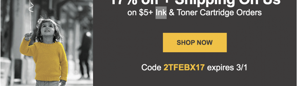 New promo code 2TFEBX17 takes 17% off your already low-priced ink supplies plus gives you free shipping! Code valid through 3/1. Used them exclusively for years for all our inks with never a bit of trouble.