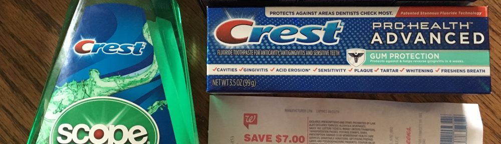 Buy three marked Crest products at Walgreens this week and get a $7 Register Reward. Since the $1 coupon in 8/11 rmn says limit two identical coupons, add the $1 digital one to your account! My subtotal was $5.97 (three $2.99 products less $3 in coupons). I used points to reduce my OOP, since I earned a few from the gummies deal last week 🙂