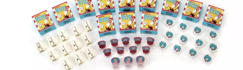 Dr. Seuss 48ct Stickers/Erasers/Sharpeners/Stampers Bundle only $6.05 with this Target clearance deal – less with REDcard. Dr Seuss Classroom Reward Bundle will let you stock up your classroom reward chest! All rewards are fun and functional. 4pk Sticker Treat boxes come with 5 different stickers in box (Total 12 boxes). 4 pike Self-Inking Stampers are red stampers with Dr. Seuss hat as the stamp, these also make a great item for tracking daily accomplishments on reward charts (Total 12 Stampers) . 6 pk erasers come with printed Thing 1 on each eraser ((Total 12 Erasers). 4 pack sharpeners are a handy item for any pencil case.(Total 12 sharpeners)