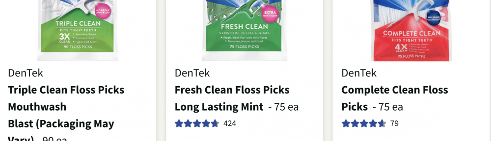 Need floss picks? Grab a couple of bags of DenTek floss picks for 50¢ pls take after BOGO sale and $2 coupon. Total was 68¢, but I’m gonna pass ’cause FirstBorn just informed me he still has a full bag of 500!