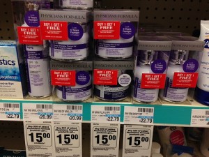 Got a tip from a reader about BOGO peelies on the Physicians Formula products at CVS – Spend $20 and get $15 back in ecbs!  If you’re looking to burn some ecbs, or this is a product that you use, head on over and stock up now.  Limit one offer per card.  There is a $1 off any Physicians Formula product coupon in the the 2/10 S (the Chicago cover shows DirectTV).  CVS coupon policy specifically allows for using both the BOGO coupon and the cents off coupon.