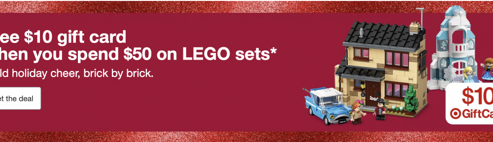 Spend $50 on LEGO get $10 Target gc Posted on December 6, 2020 by The Goddess Great way to buy your LEGO sets and still have cash for other gifts or cleaning supplies! Looks like 161 products on this deal – something for everyone on the list.