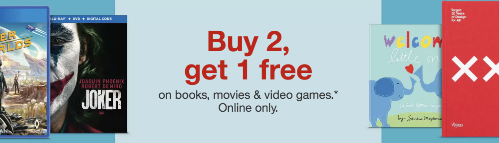 Target: B2G1 books, movies, videos Posted on January 19, 2020 by The Goddess Buy two books, movies, video games online only at Target and get a third one FREE!