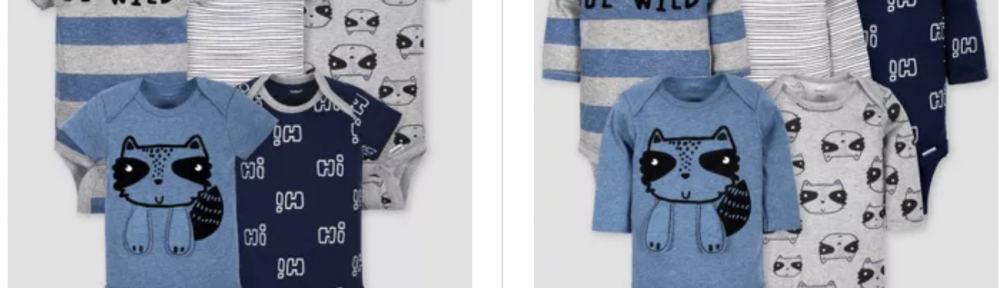 Target has a promo this week on kids and infants apparel: Spend $40 and take off $10. So we check out the sale on long and short sleeved Gerber onsies at 5/$8 (includes organic!) and get 25 for $30 (or less with REDcard) – – you’ll be worrying about laundry a lot less. Or maybe the perfect shower gift???