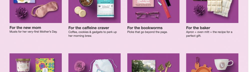 Target is gearing it for Mother’s Day, but no reason these selections wouldn’t work for anyone! Pick a price point and go. Red Card means extra savings and free shipping.
