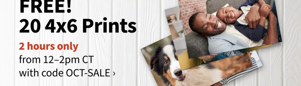 Wags Flash Code: 20 FREE 4×6 prints Posted on October 18, 2023 by The Goddess . Complete the order within that time frame and pick up at your convenience because this code is only valid from 12-2 CT. Only valid online and won’t work with their APP – frankly, nothing seems to work with their APP 🙂