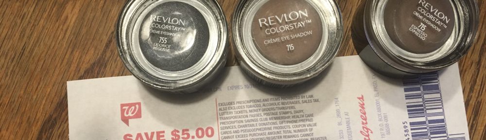 So today I went to another Walgreens that had NO $5 RR shelf tags and NO 40% off Revlon product signs (actually didn’t see clearance, either). Asked Beauty Advisor and she hadn’t heard anything about them…decided to just try it and void the transaction (couponers’ version of catch and kill) if it didn’t work. Sure enough, the $8.99 shadows rang at $5.39, so I bought 3, used the $5 coupons plus $2 in bonus points, leaving me to hand over two quarters to get back a $5 RR which generated without issue. The Beauty Advisor was stunned ’cause she hadn’t been told any of this. I said that’s because Walgreens doesn’t really want customers coming in to buy things.