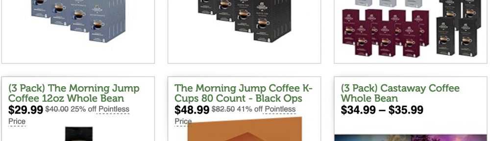 Coffee Deals over on Woot – Barista Joe’s, Peet’s, Gran Caffe for $19.99-$54.99. They have capsules, cans, k-cups, bags of beans and every way of caffeine ingestion you might want…for less.
